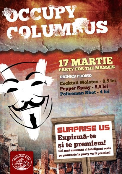 Sâmbătă, 17 martie, fii liber să te exprimi şi ocupă Columbus Cafe împreună cu toţi prietenii tăi!