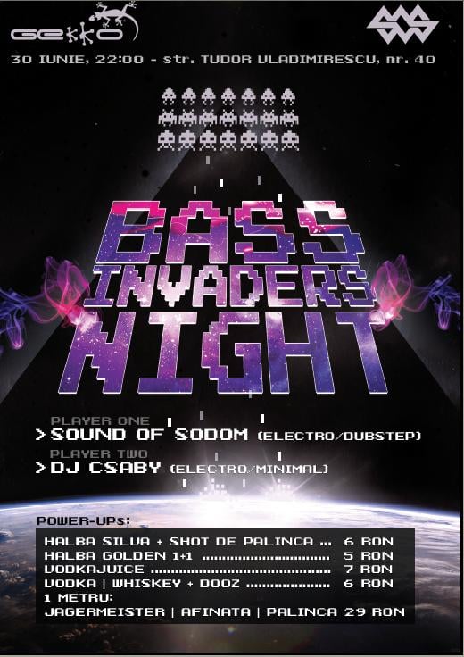 Bass Invaders Night în Gekko cu Sound of Sodom şi DJ Csaby - sâmbătă, 30 iunie, 2012.