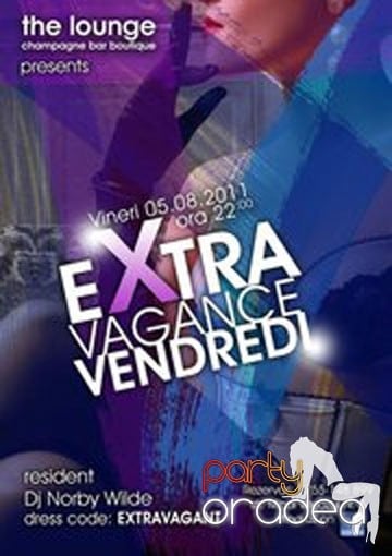 The Lounge vă invită în data de 5 august, 2011, la petrecerea Extravagance Vendredi cu DJ Norby Wilde. Dress code: EXTRAVAGANT!