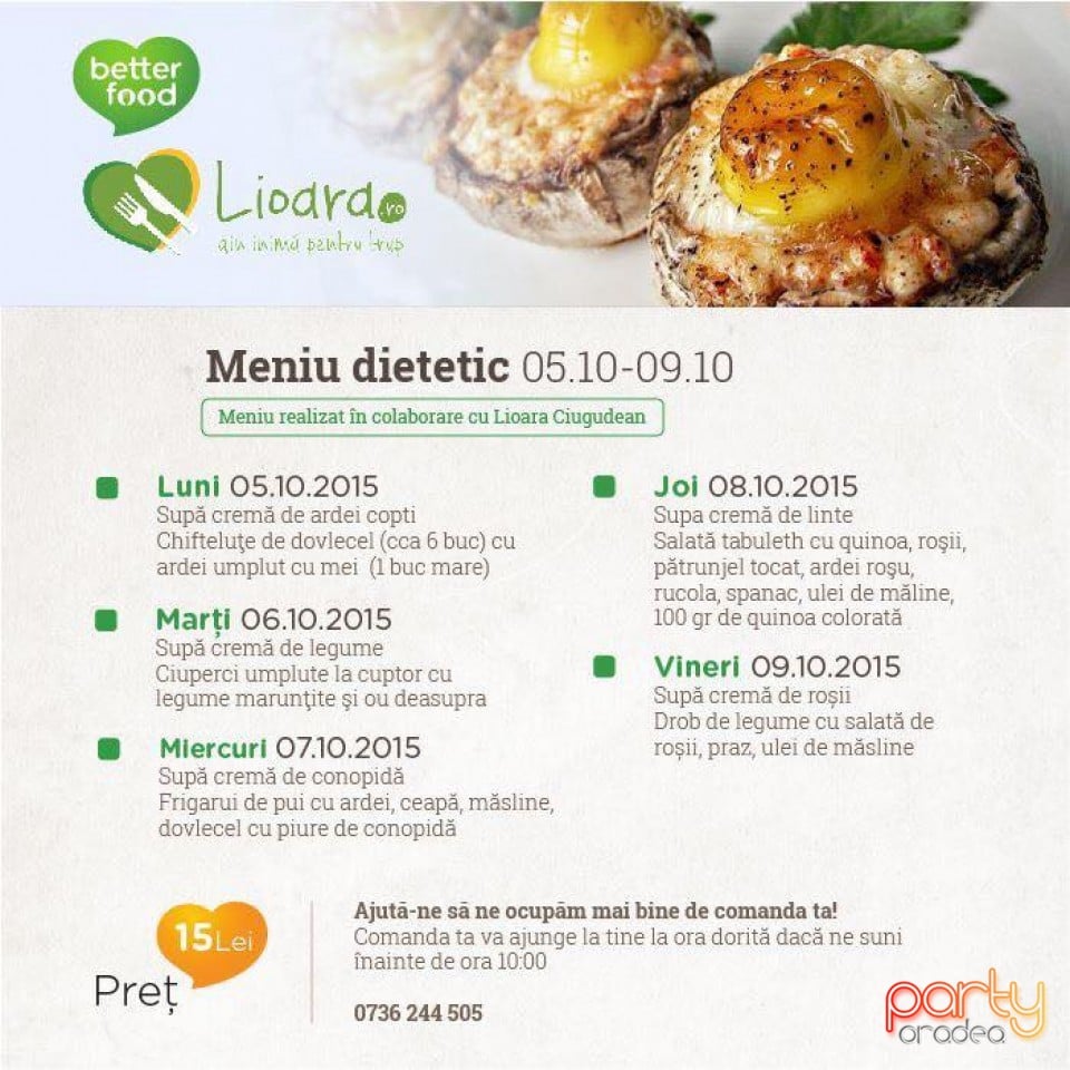 A elaborat meniuri hipocalorice care se regăsesc în restaurantele din Oradea: Taverna, Tranzit şi Impero, dar şi un meniu de Smoothies by Lioara care se găsesc în